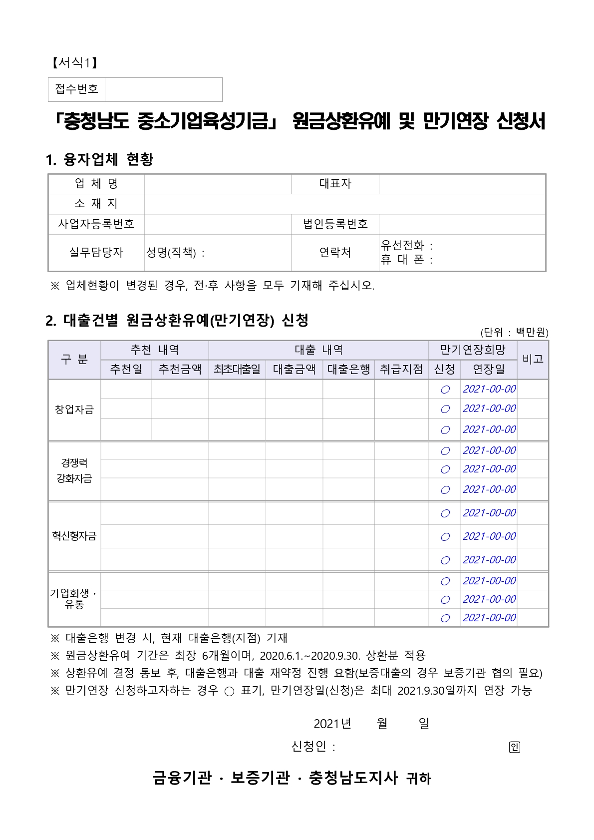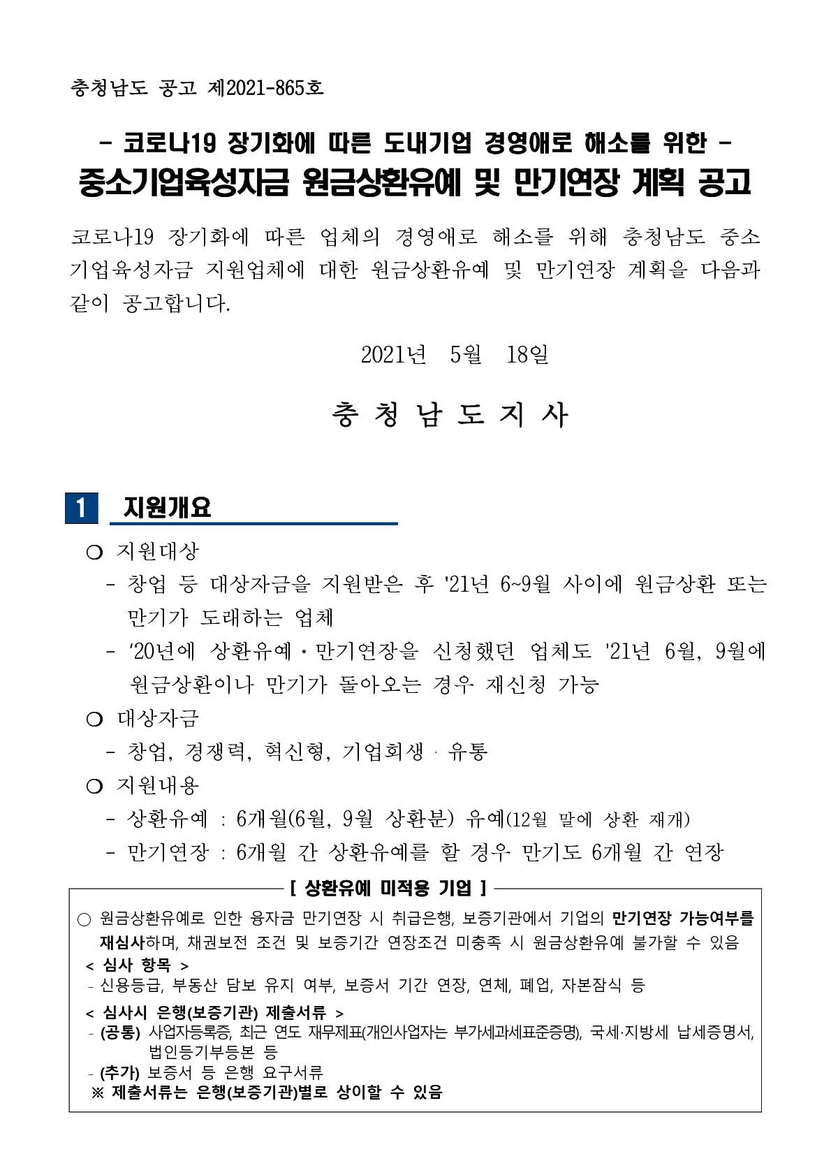 | 중소기업육성자금 원금상환유예 및 만기연장 계획 공고 |