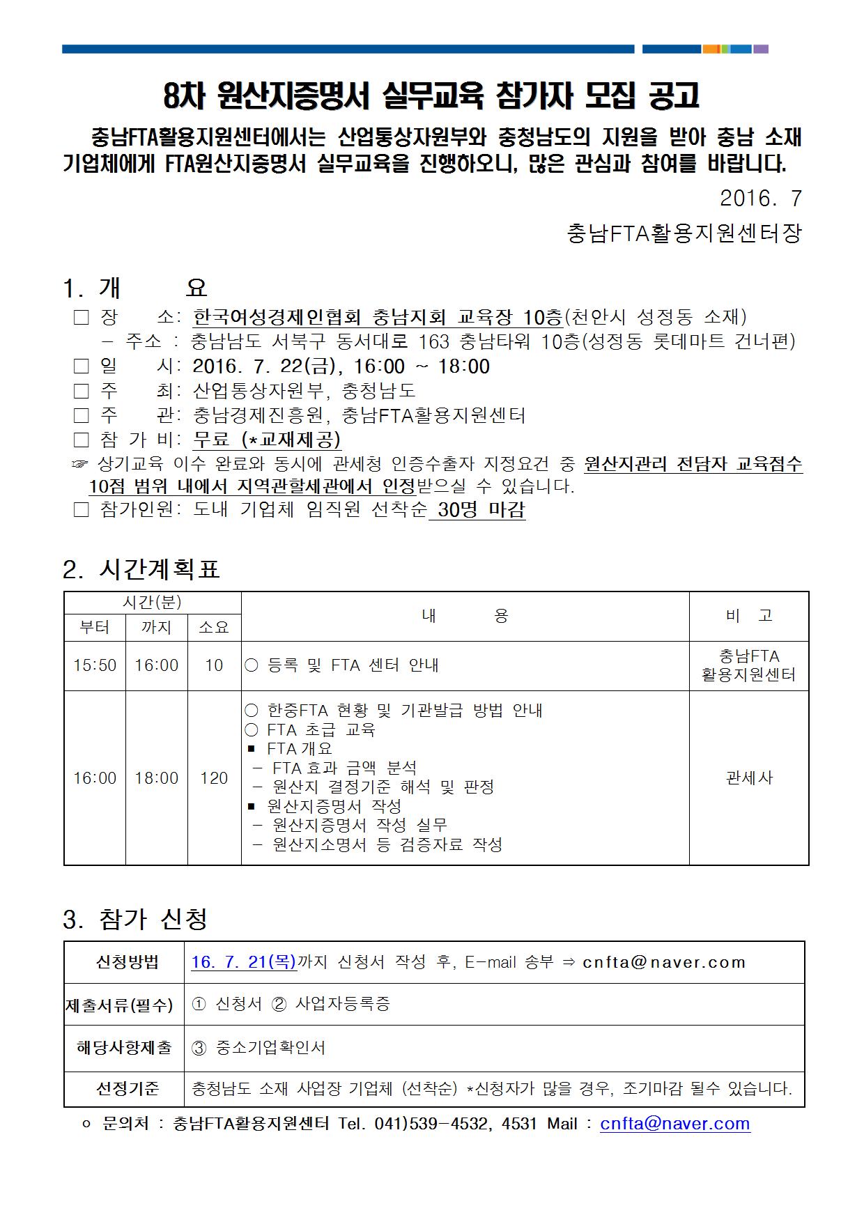 | 제8차 원산지증명서 실무교육 개최 및 교육생 모집 |