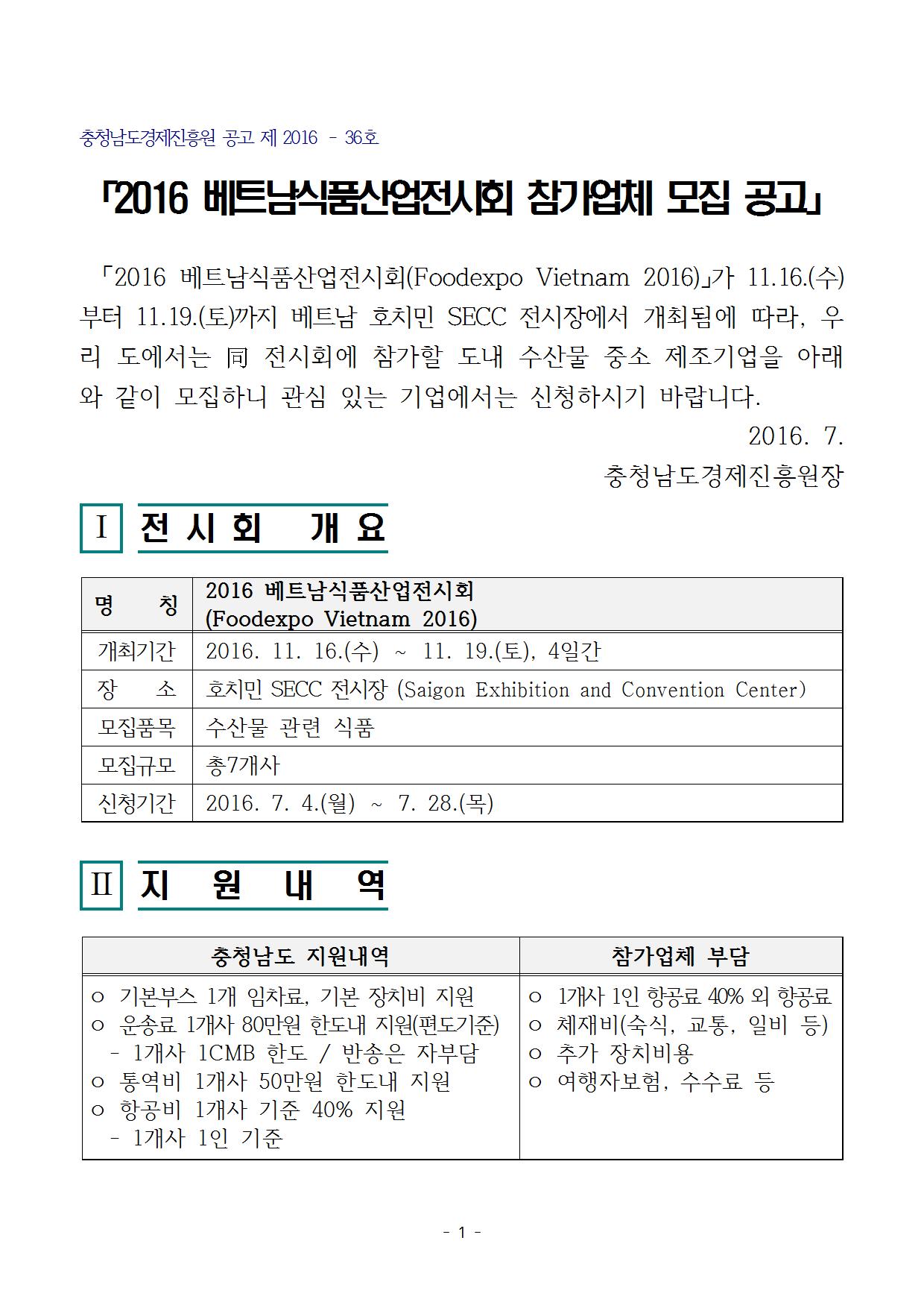 | 2016 베트남 식품산업전시회 참가업체 모집 공고 |