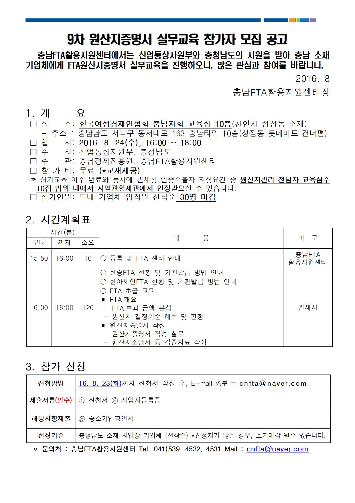 | 제9차 원산지증명서 실무교육 개최 및 교육생 모집 |