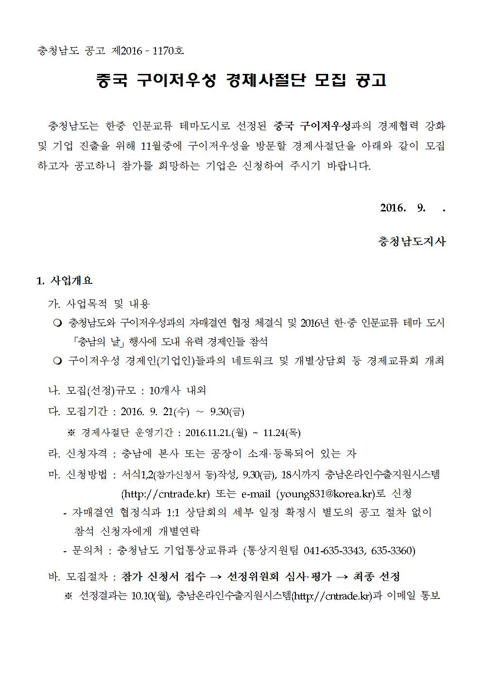 | 공고 중국 구이저우성 경제사절단 모집 안내 |