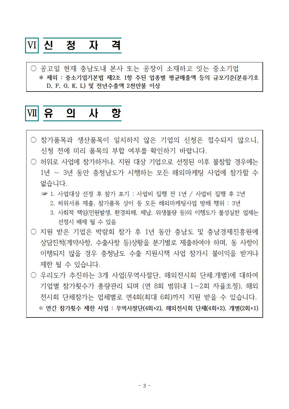 중소기업 제품의 국/내외 판로개척을 위해 국내 전시박람회 참가지원,