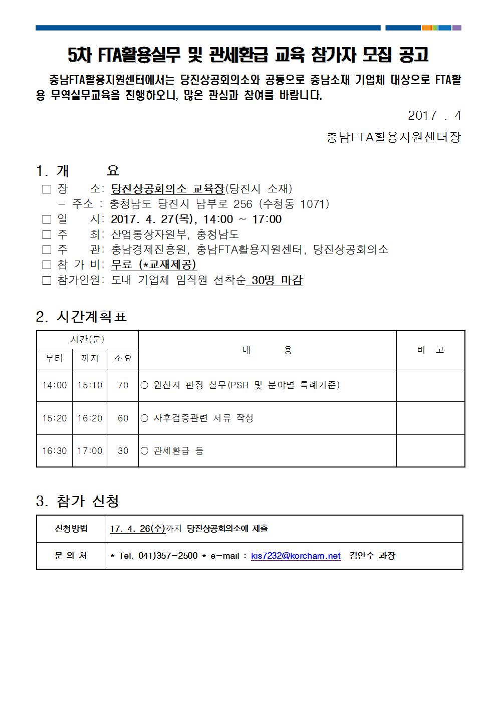 | 2017 제5차 FTA활용실무 및 관세환급 교육 참가자 모집 공고 |