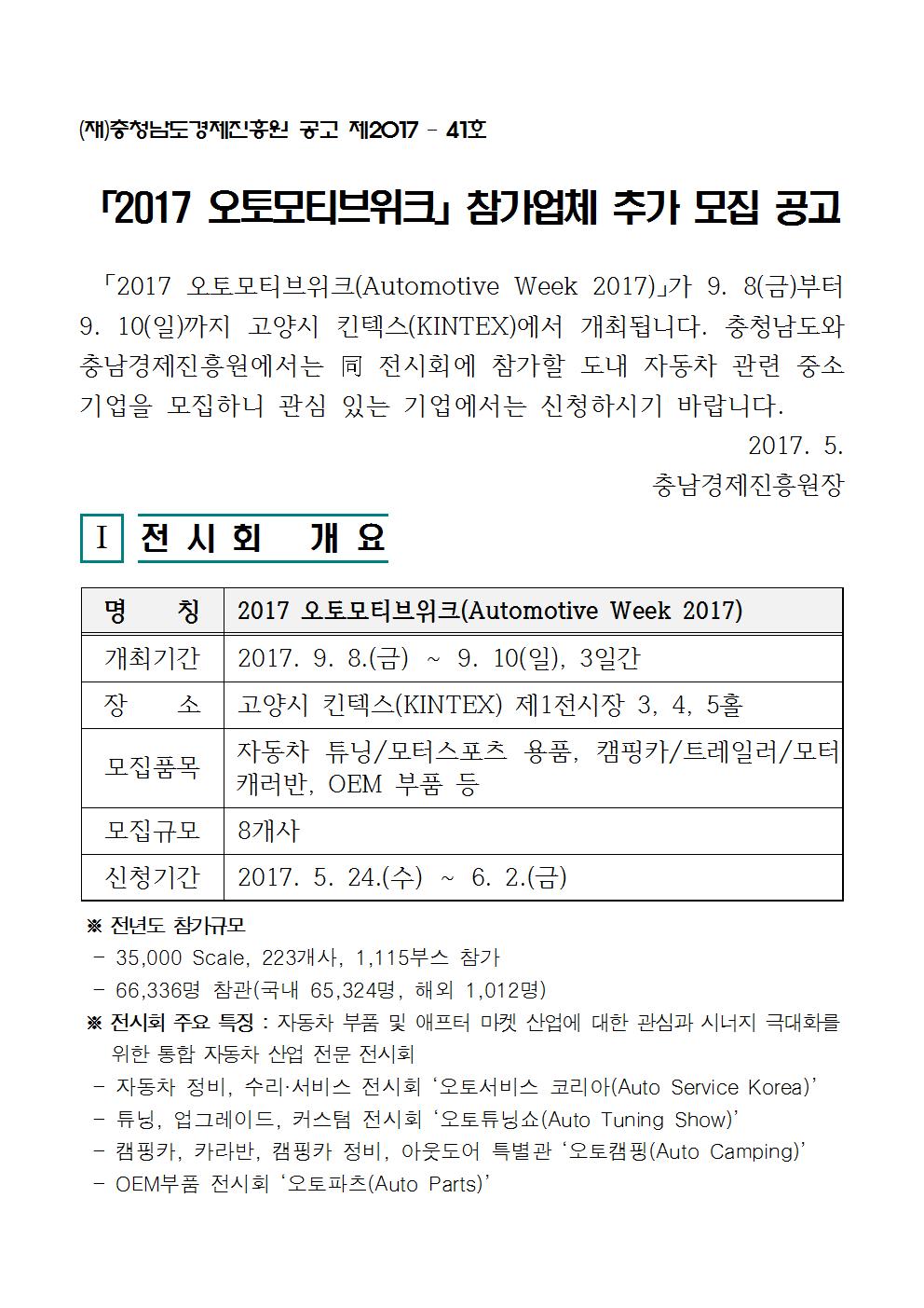 | 모집 2017 오토모티브위크 참가지원사업 참가기업 추가 모집안내 |