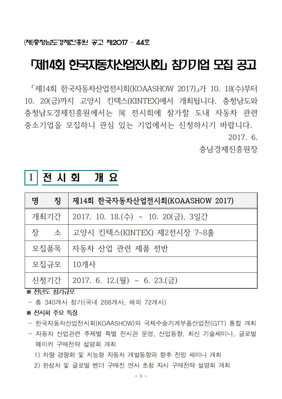 | 모집 제14회 한국자동차산업전시회(KOAASHOW) 참가지원사업 모집안내 |