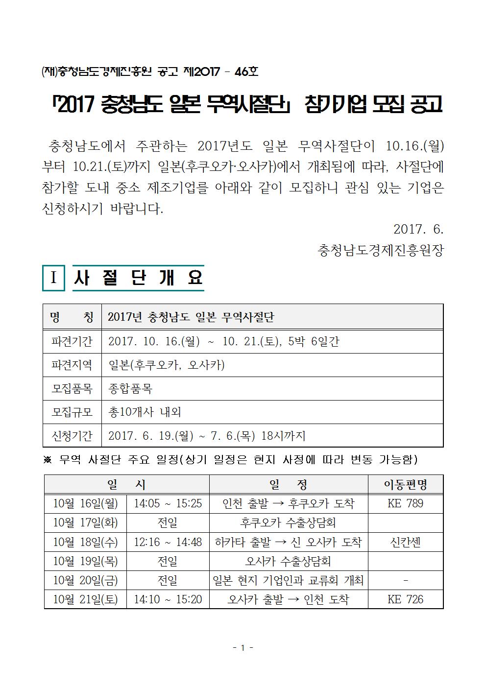 | 모집 2017 충청남도 일본 무역사절단 파견지원 참가기업 모집 안내 |