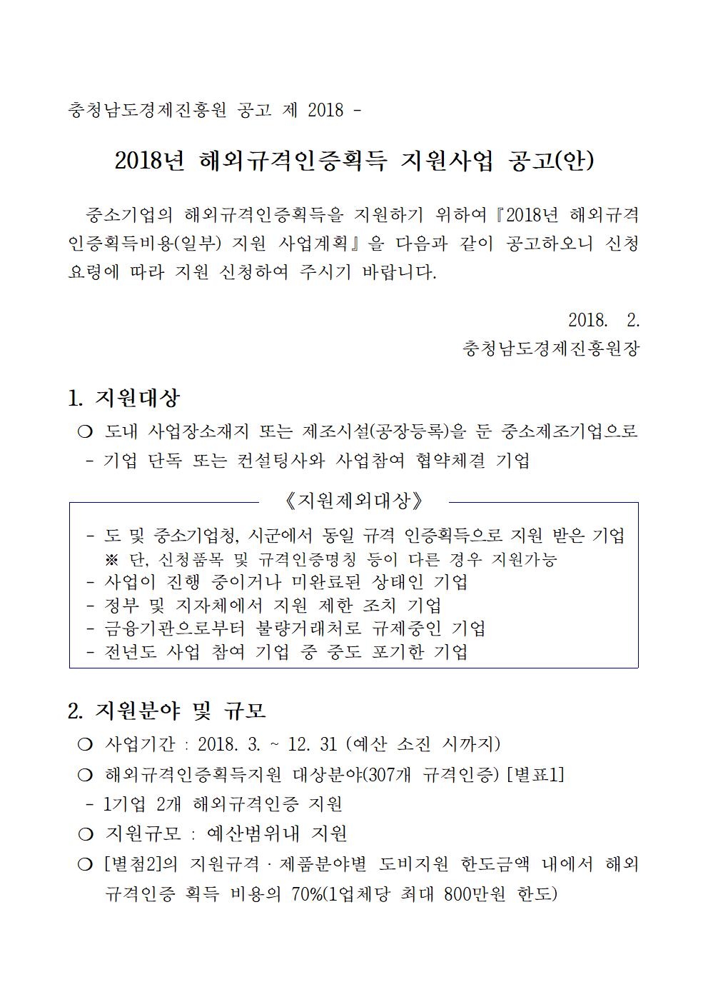 | 2018 해외규격인증획득지원사업 참가기업 모집 공고 |