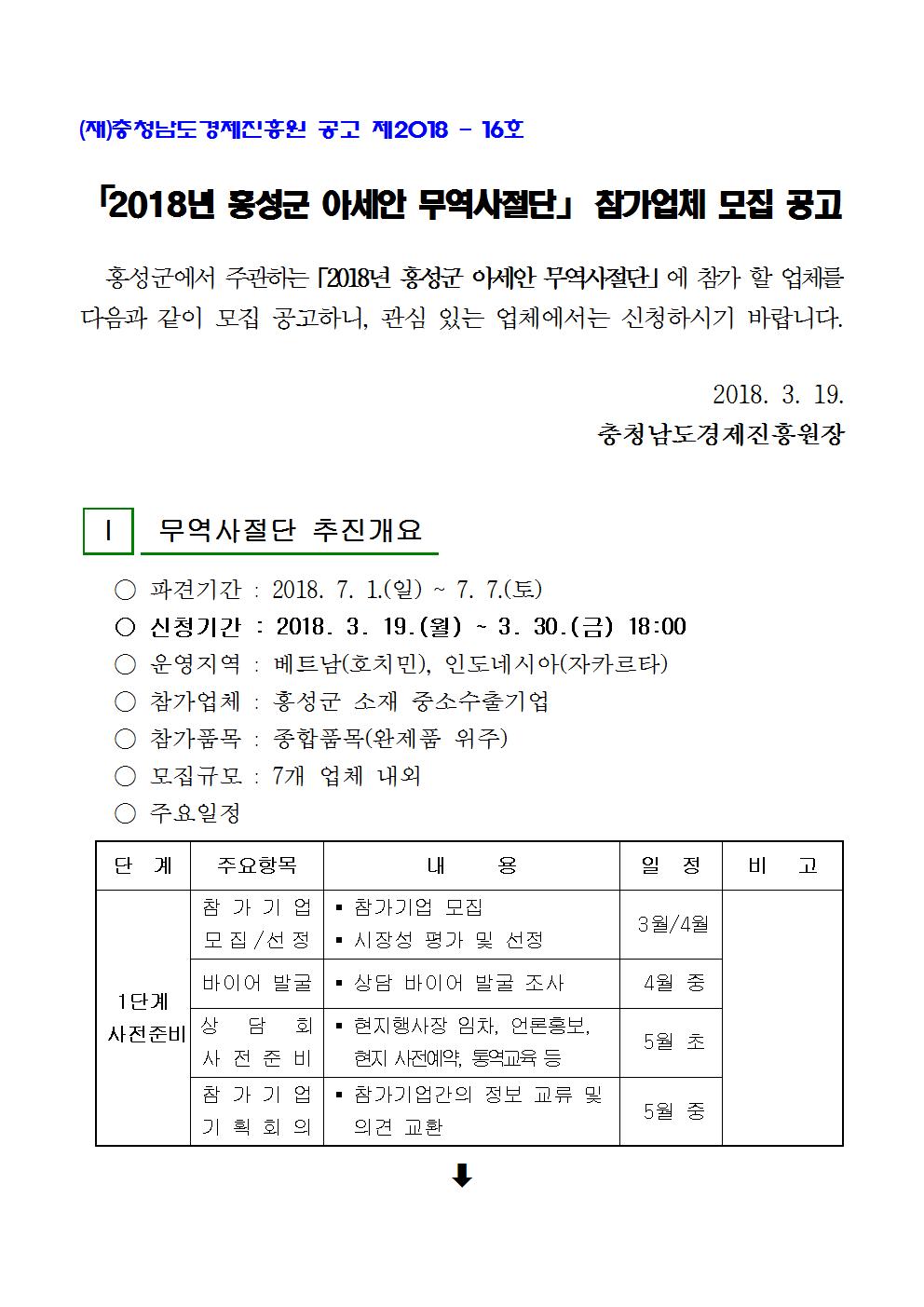 | 2018년 홍성군 아세안 무역사절단 운영사업 참가업체 모집공고 |