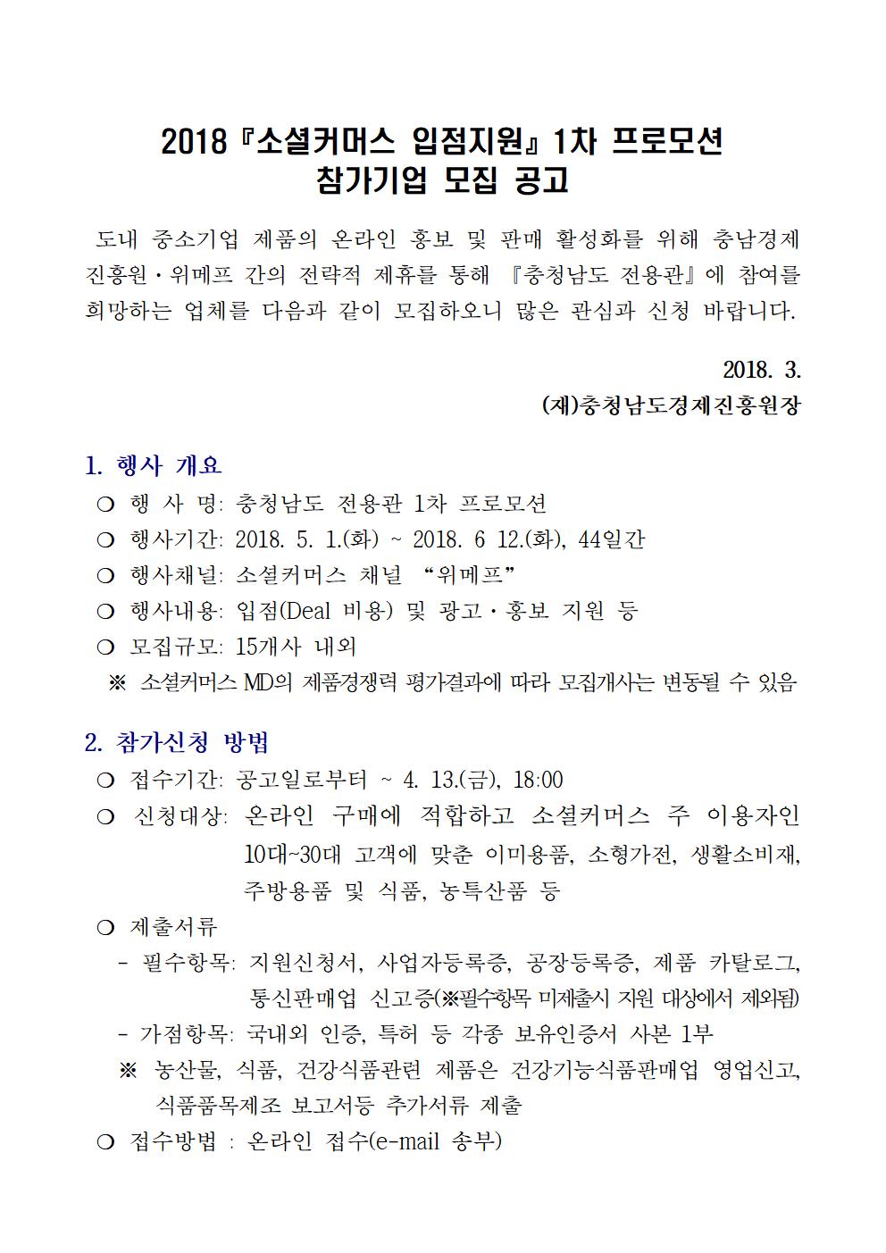 | 2018 소셜커머스 입점지원사업 1차 프로모션 참가기업 모집 공고 |