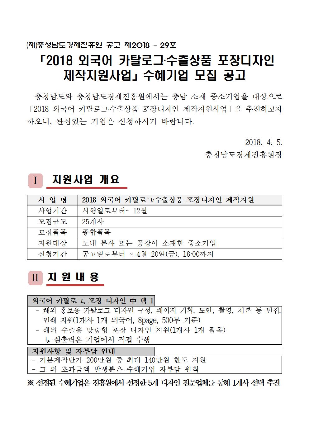 | 2018 외국어 카탈로그·수출상품 포장디자인 제작지원사업 수혜기업 모집 공고 |