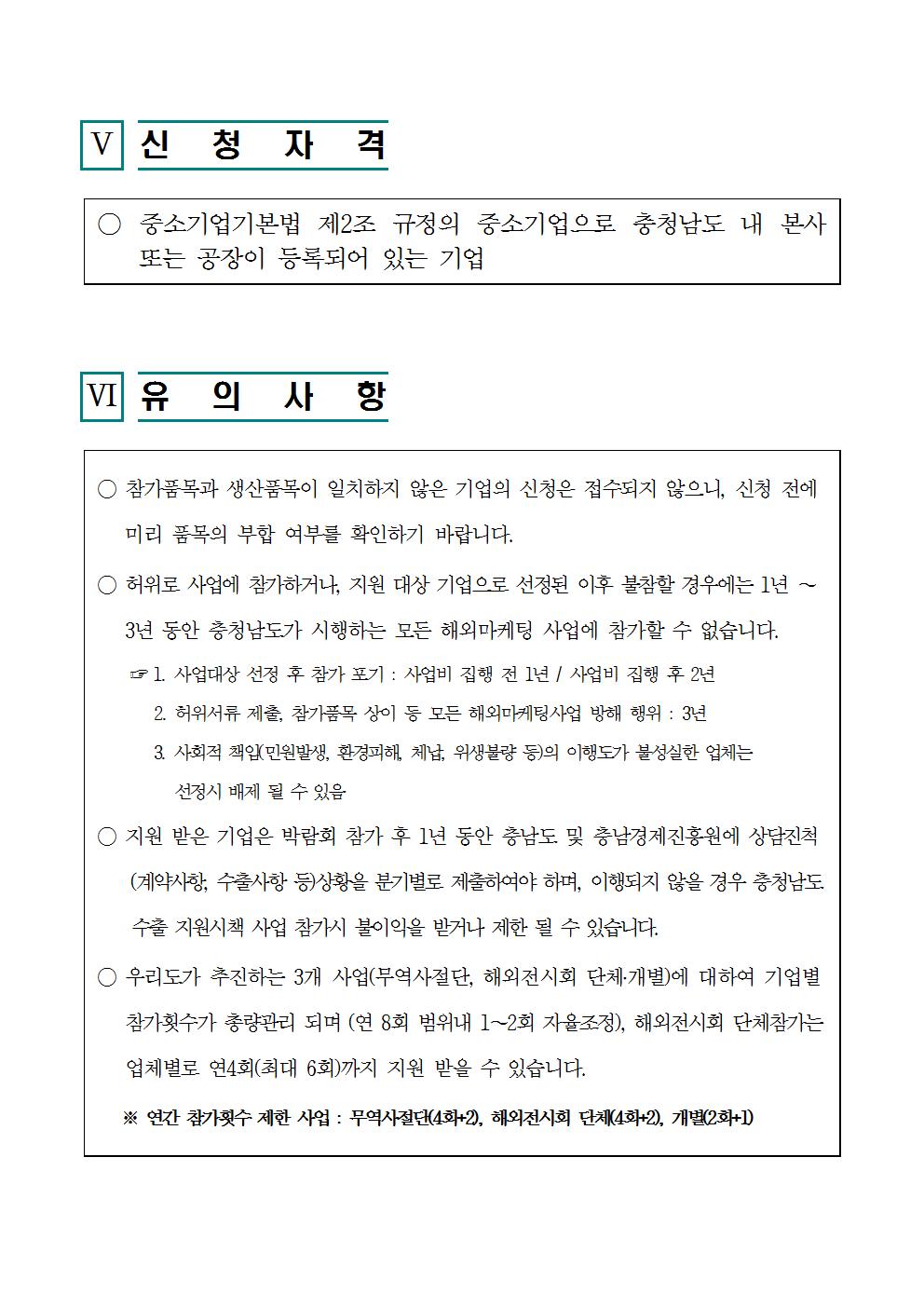 중소기업 제품의 국/내외 판로개척을 위해 국내 전시박람회 참가지원,