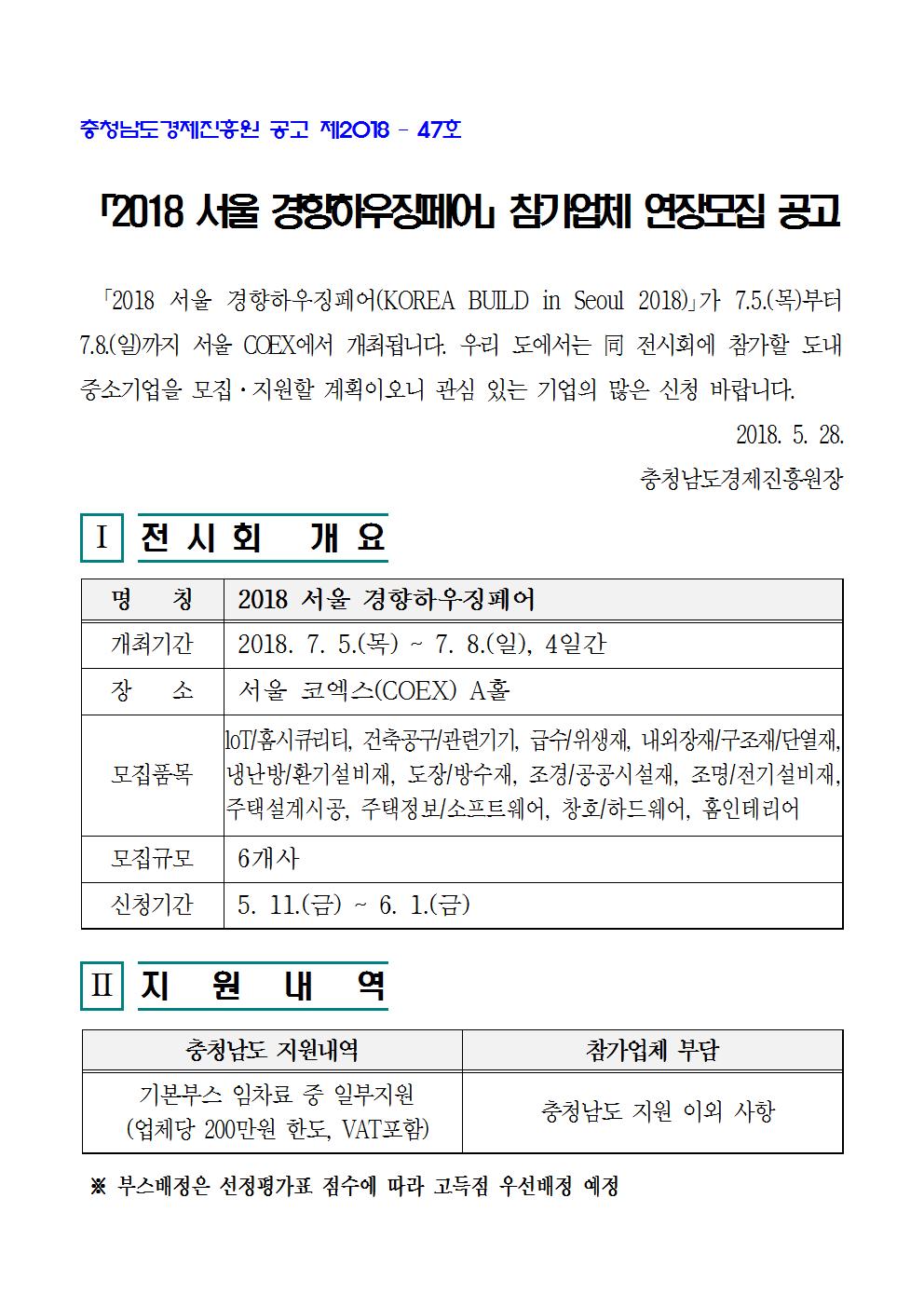 | 2018 서울 경향하우징페어 참가기업 연장모집공고 |