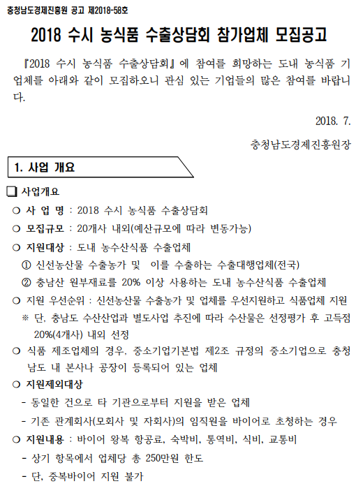 | 2018 수시 농식품 수출상담회 참가업체 모집 |