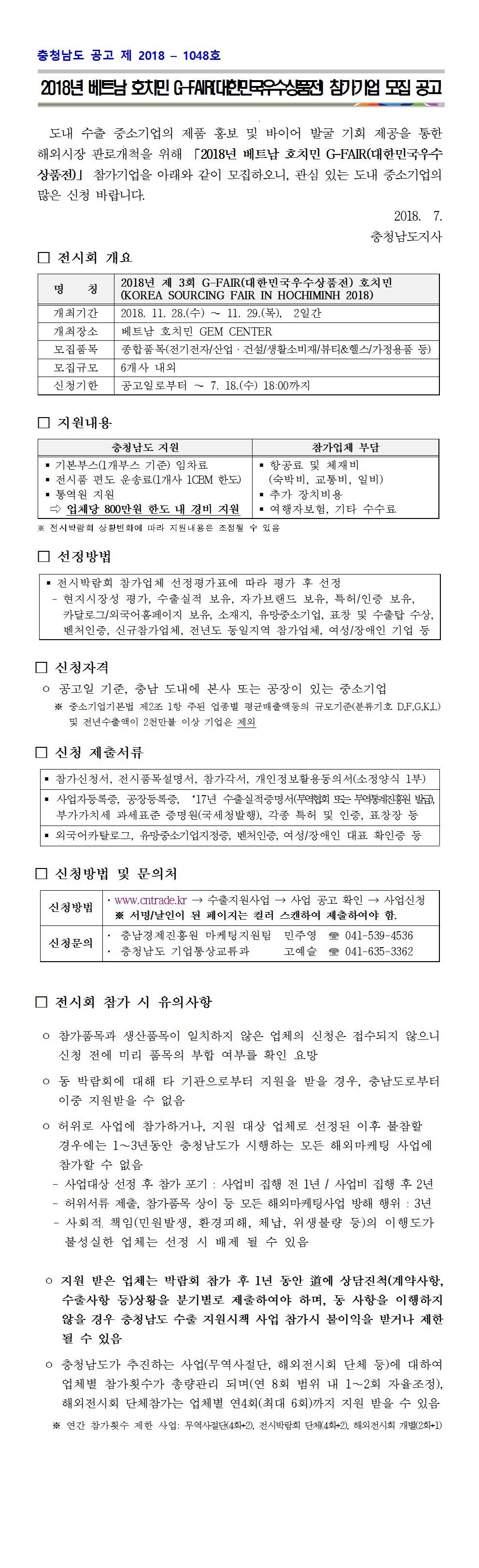 | 2018 베트남 호치민 G-FAIR 참가기업 모집 공고 |