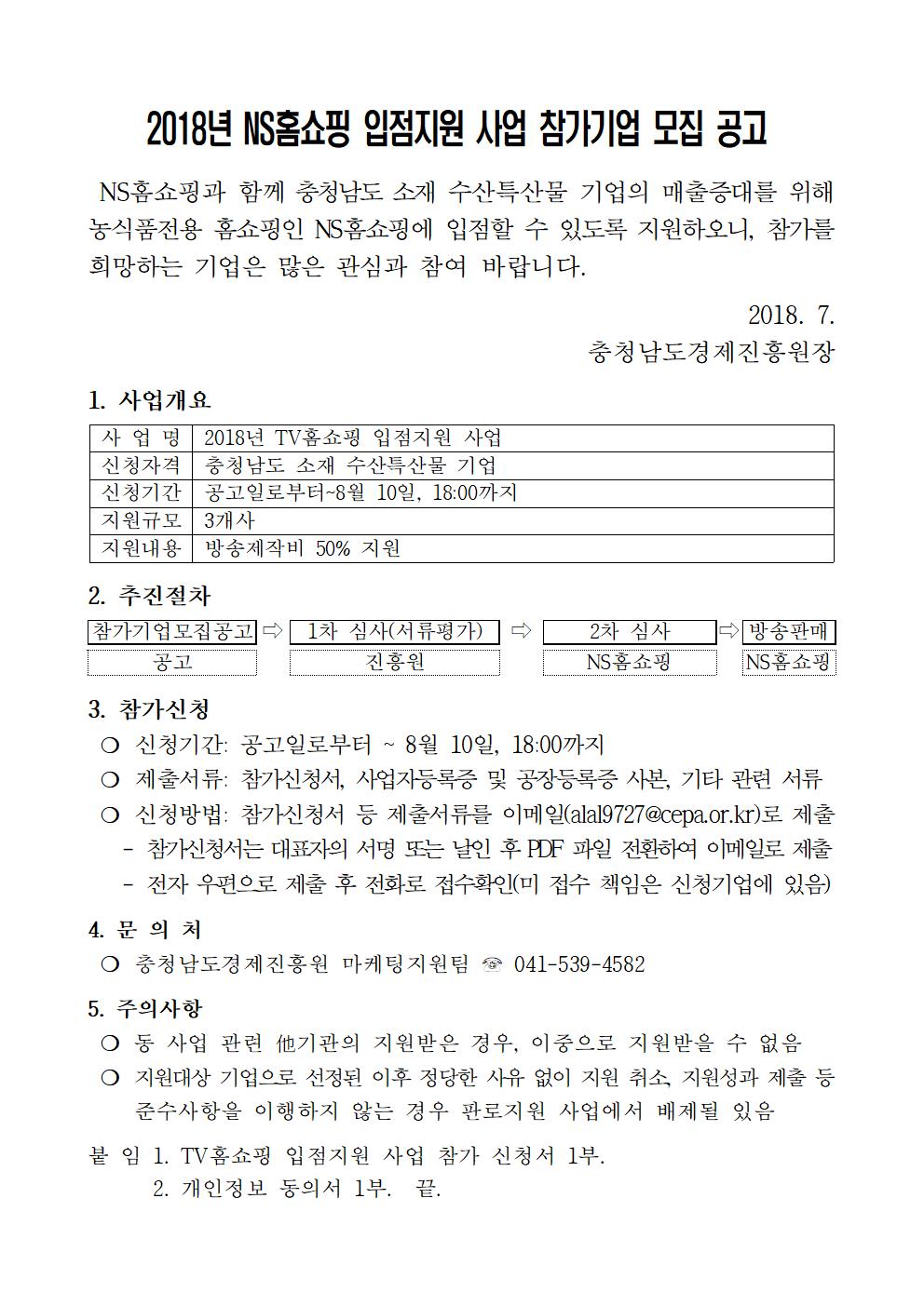 | 2018년 NS홈쇼핑 입점지원 사업 참가기업 모집 공고 |