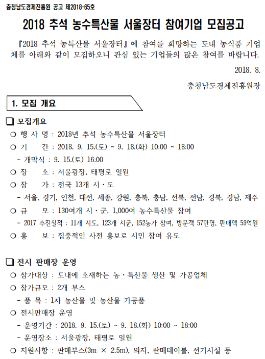 | 2018 추석 농수특산물 서울장터 참여 희망기업 모집 |