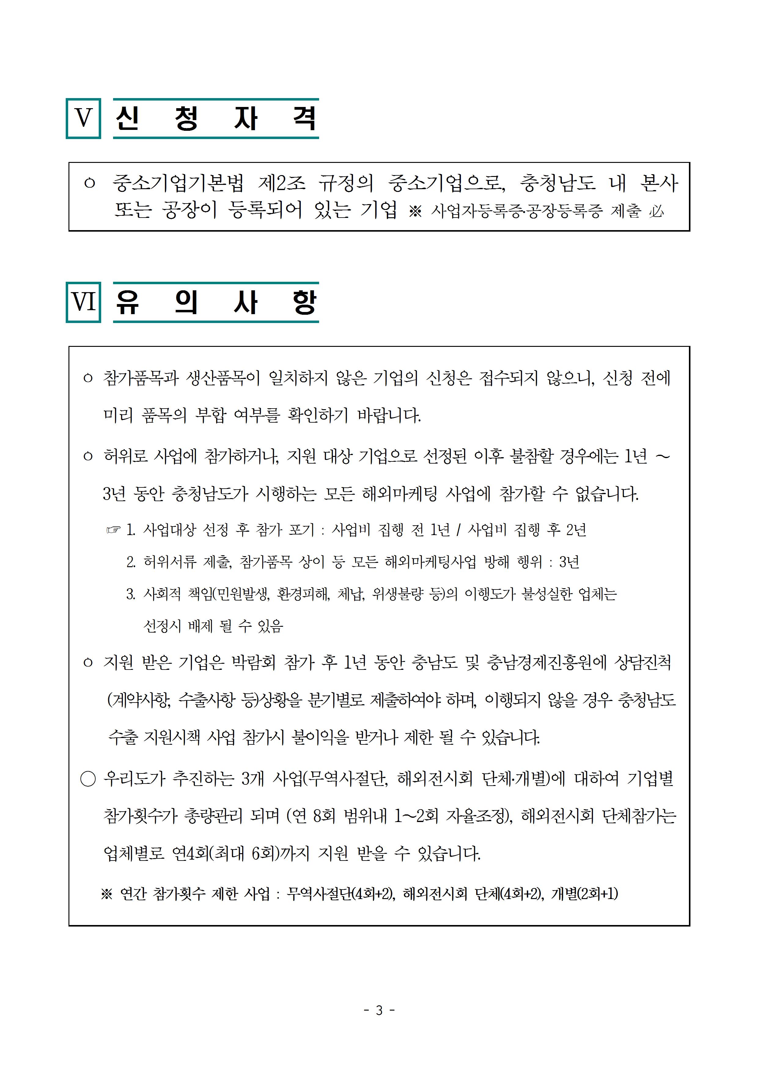 중소기업 제품의 국/내외 판로개척을 위해 국내 전시박람회 참가지원,