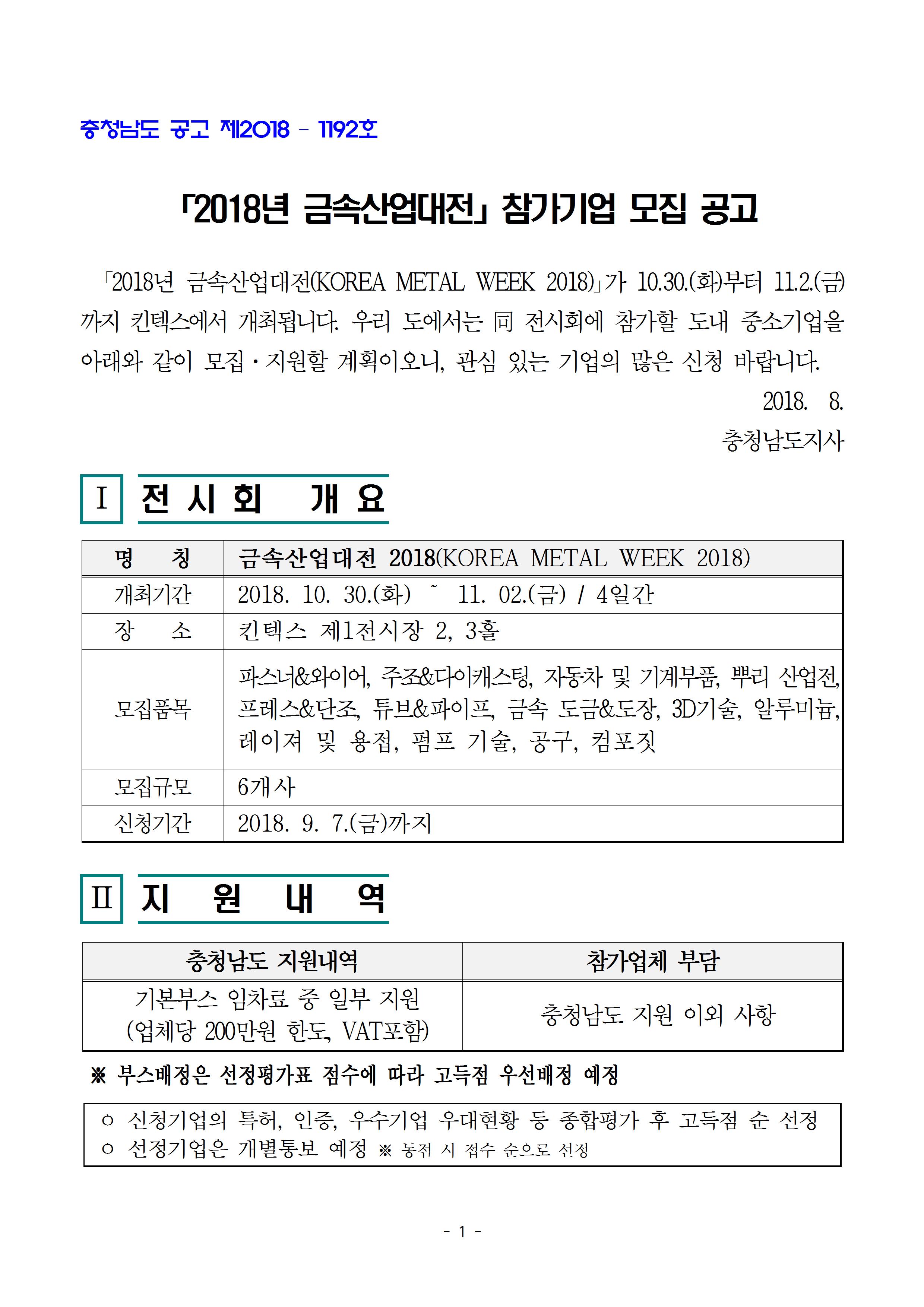 | 2018년 금속산업대전 참가기업 모집공고 |