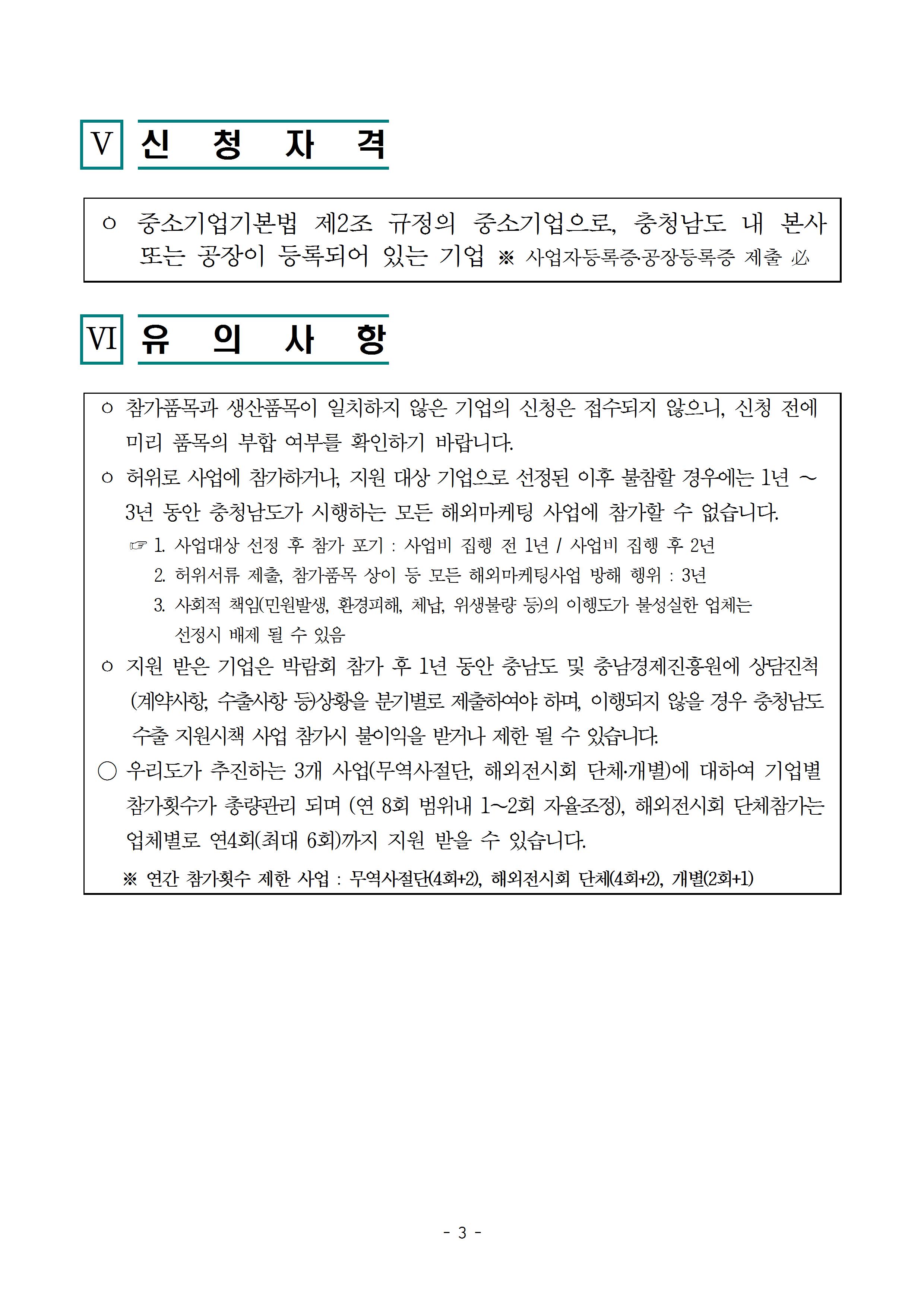 중소기업 제품의 국/내외 판로개척을 위해 국내 전시박람회 참가지원,