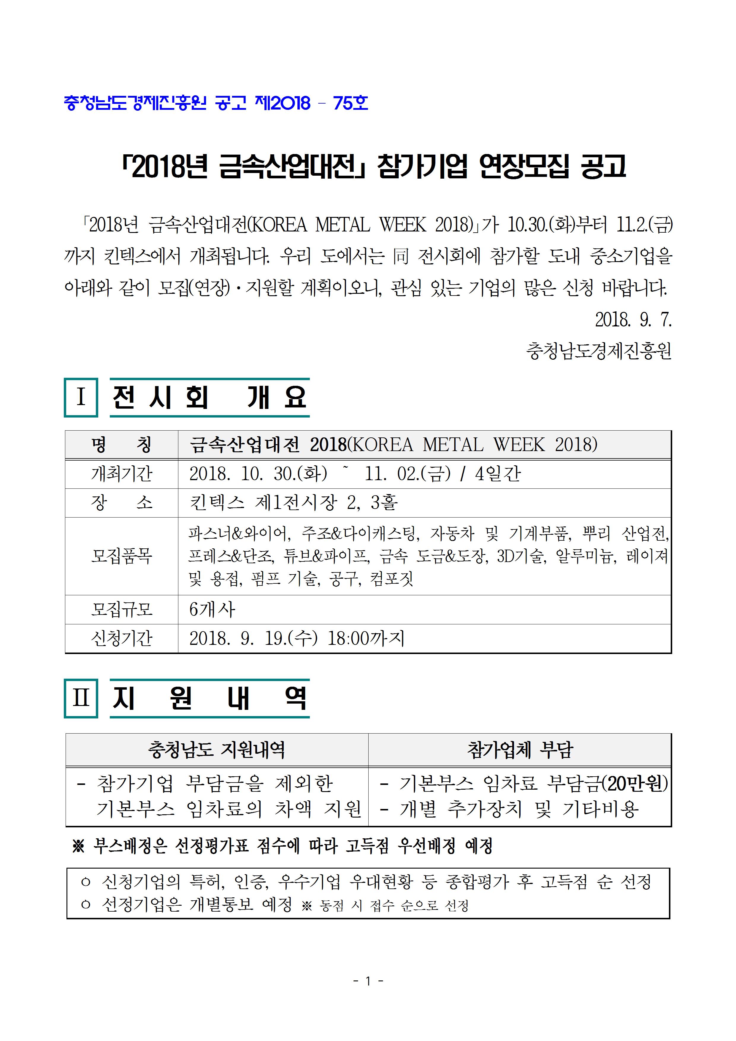 | 2018년 금속산업대전 참가기업 연장모집공고 |