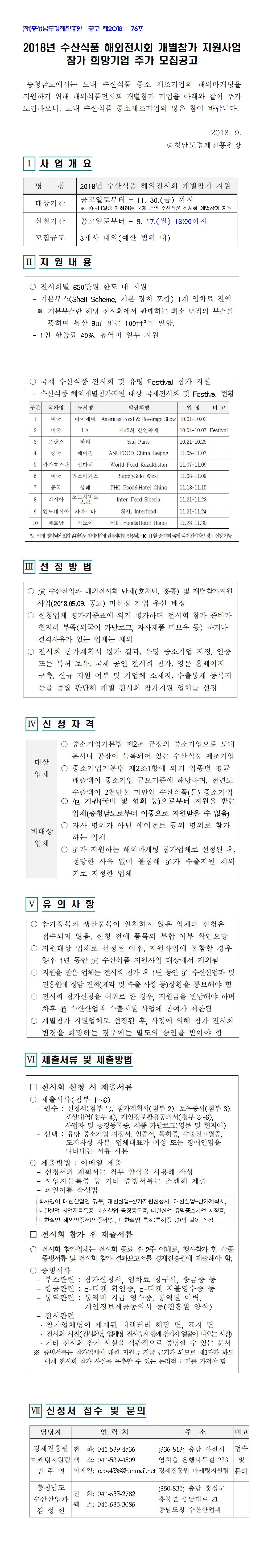 | 2018년 수산식품 해외전시회 개별참가 지원사업 참가기업 추가 모집공고 |