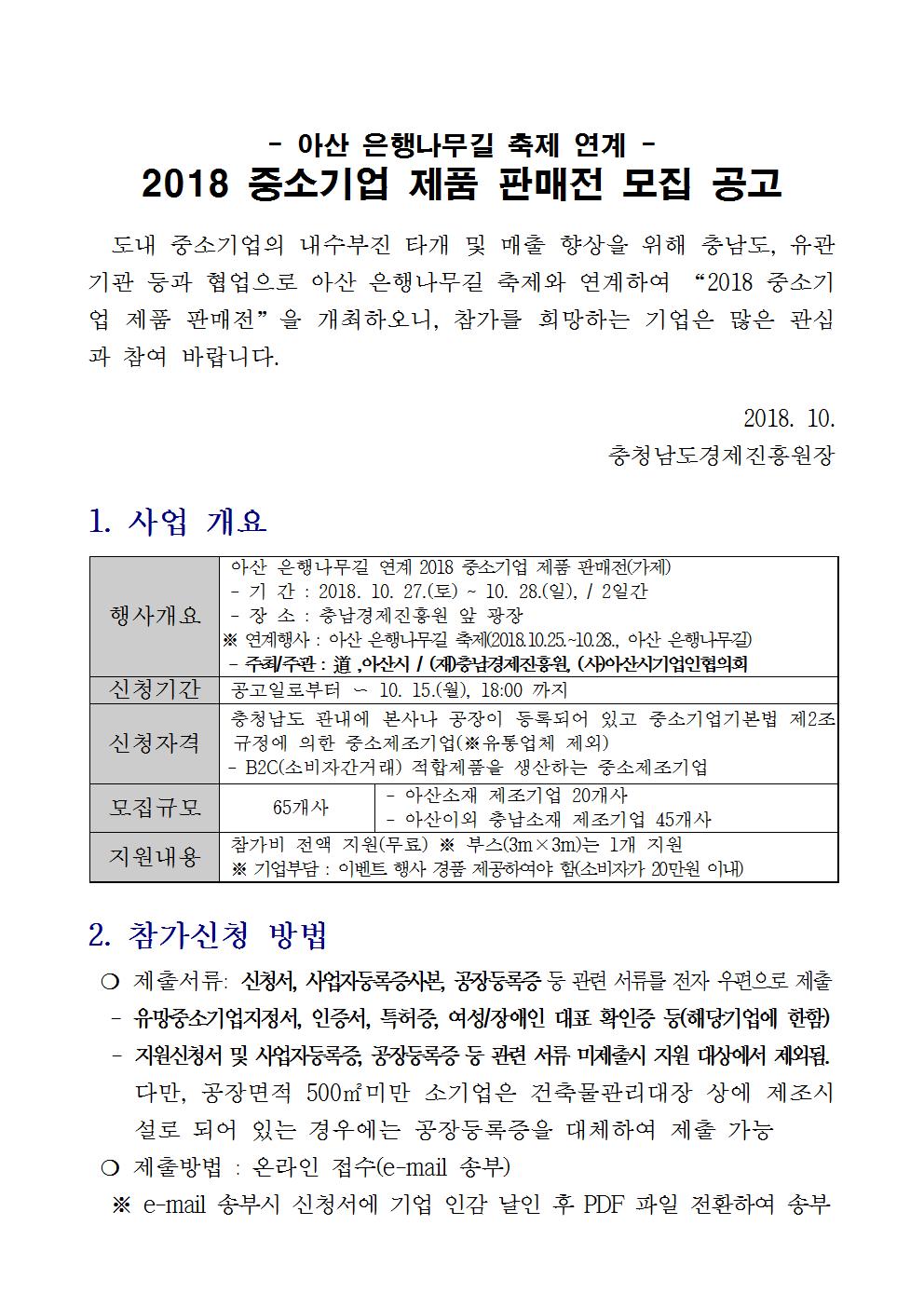 | - 아산 은행나무길 축제 연계 2018 중소기업 제품 판매전 모집 공고 - |