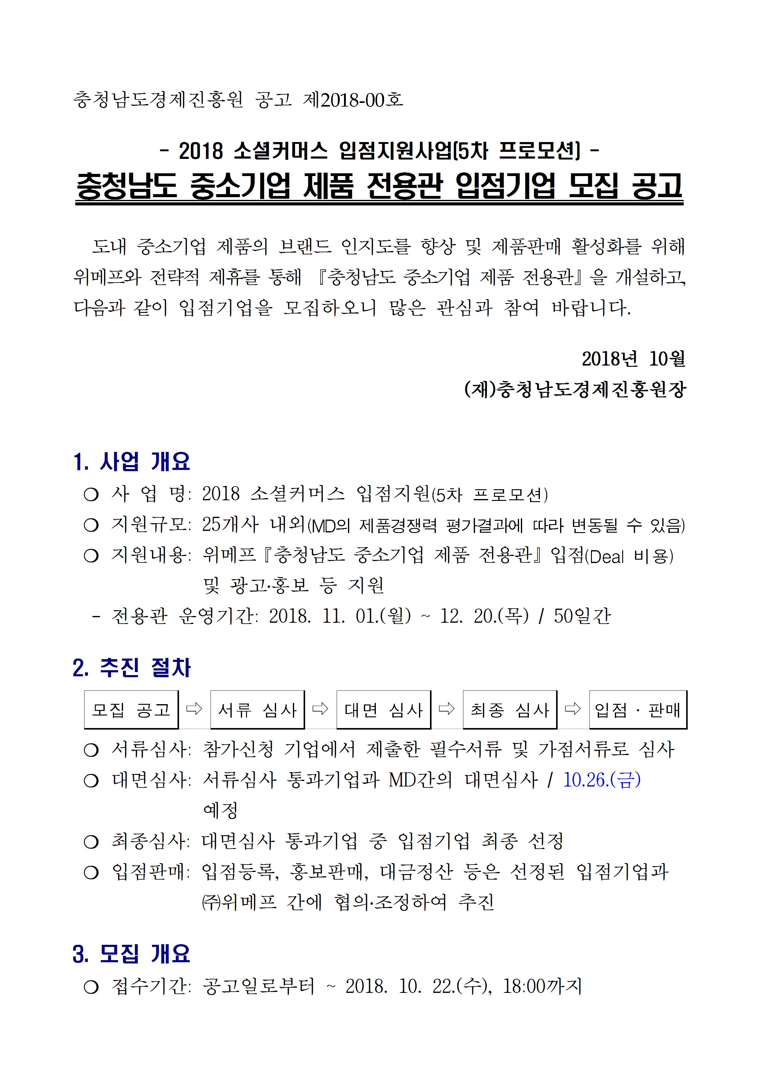 | 소셜커머스 입점지원사업 5차 프로모션 참가기업 모집 공고 |