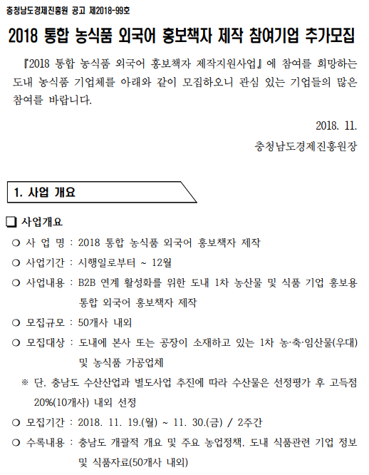 | 2018 통합 농식품 외국어 홍보책자 제작 참여기업 추가모집 |