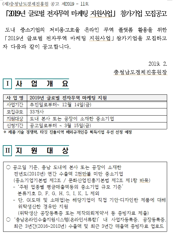 | '2019년 글로벌 전자무역 마케팅 지원사업' 참가기업 모집공고 |
