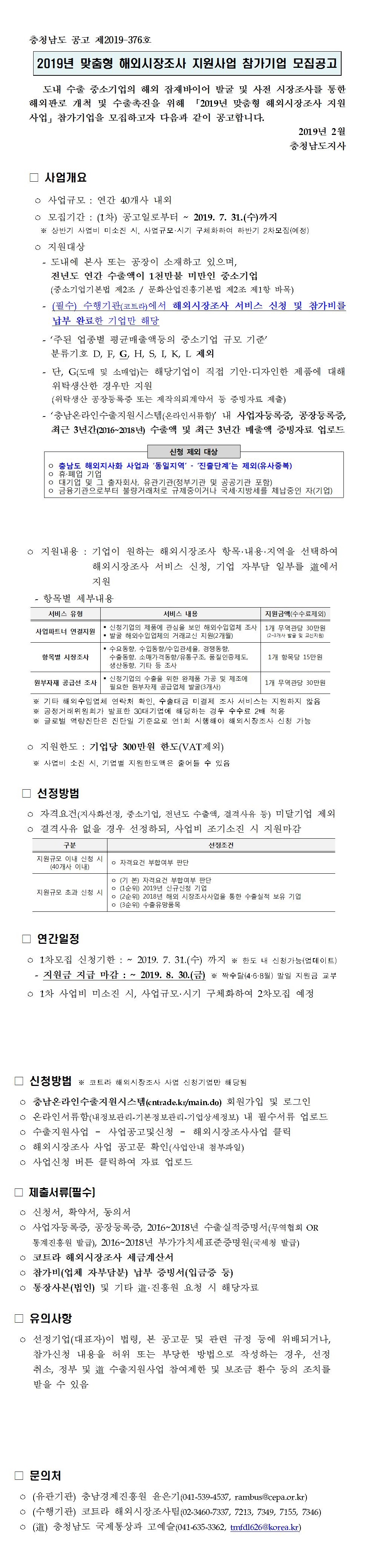 | 2019년 맞춤형 해외시장조사 지원사업 참가기업 모집공고 |