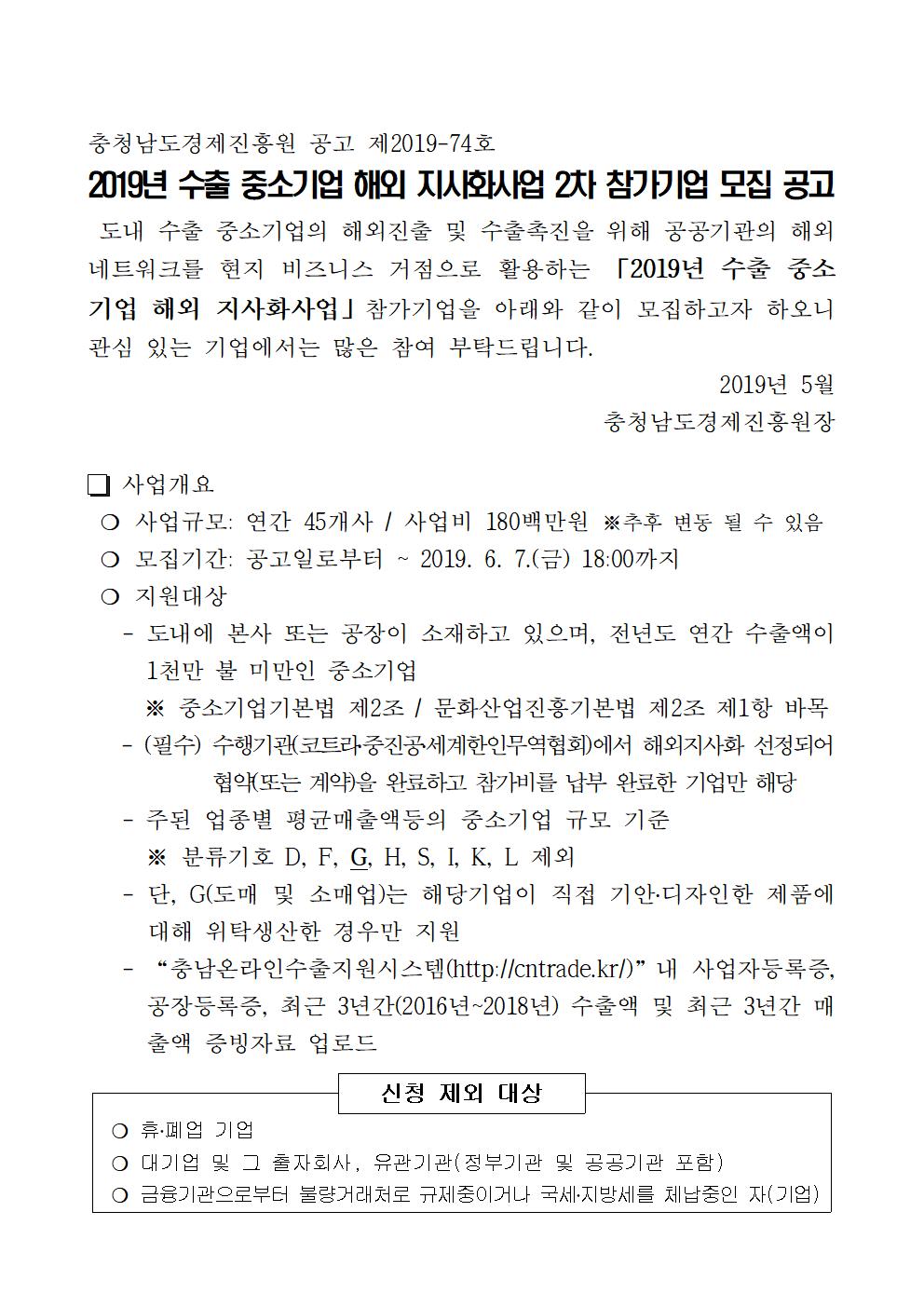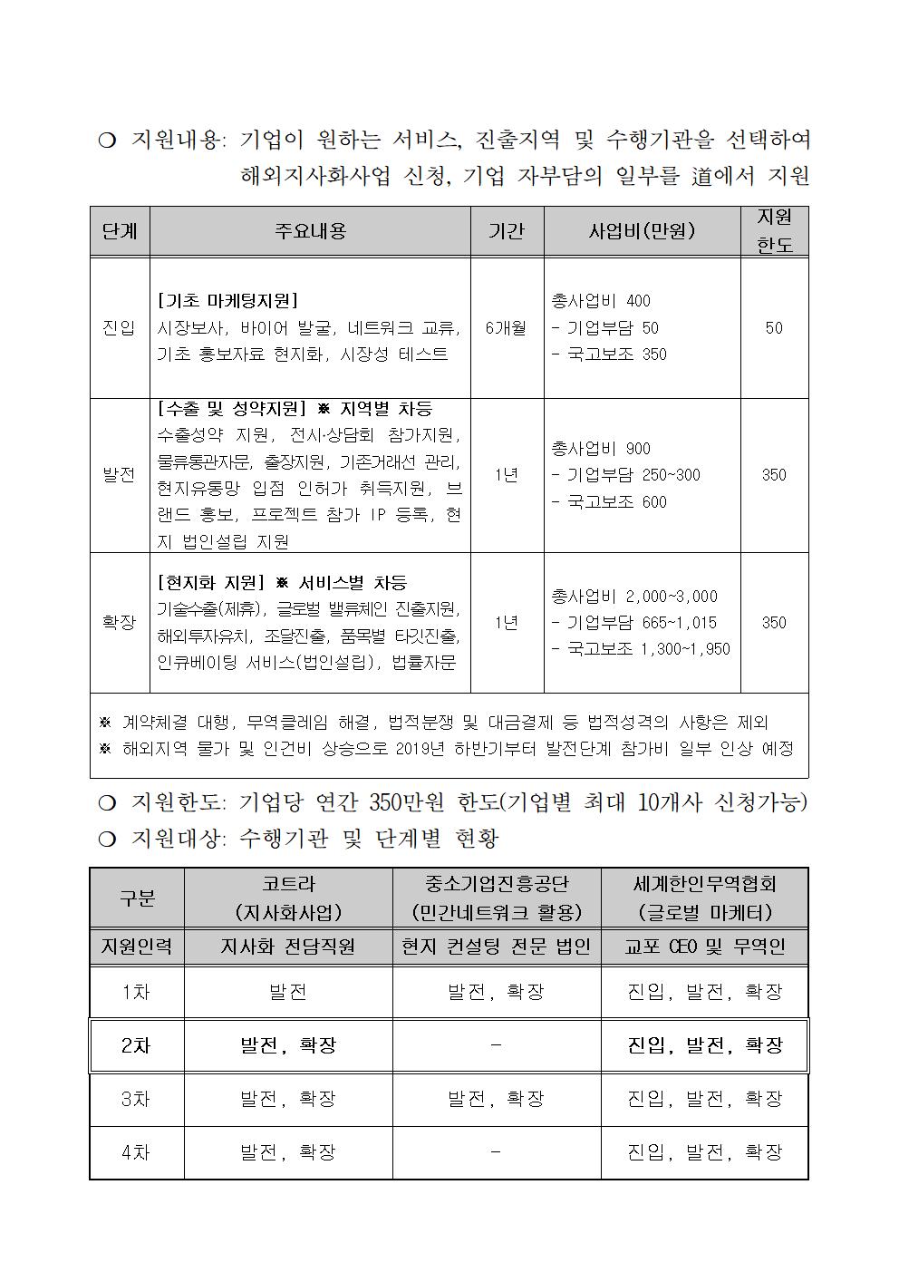 | 2019년 수출 중소기업 해외지사화사업 2차 공고 |