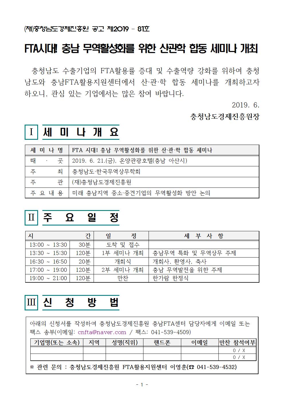 | 모집안내 FTA시대! 충남 무역활성화를 위한 산관학 합동 세미나 개최 |