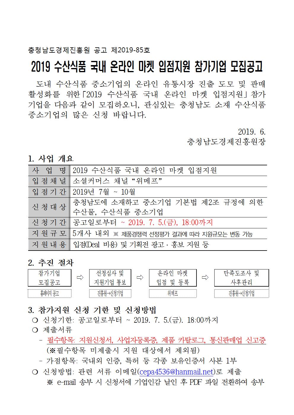 | 2019년 수산식품 국내 온라인 마켓(위메프)입점지원 모집공고 |