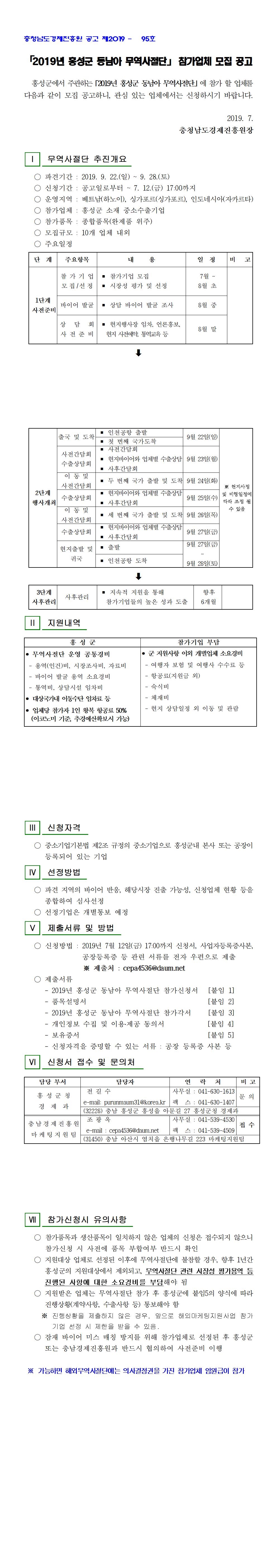 | 2019년도 홍성군 동남아 무역사절단 파견 참가기업 모집공고 |