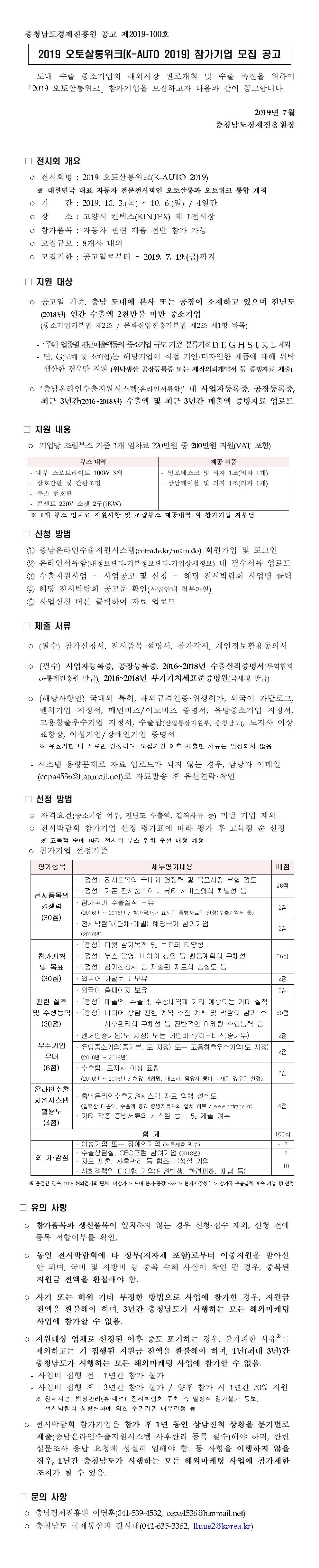 | 모집안내 2019 오토살롱위크(K-AUTO 2019) 참가기업 모집안내 |