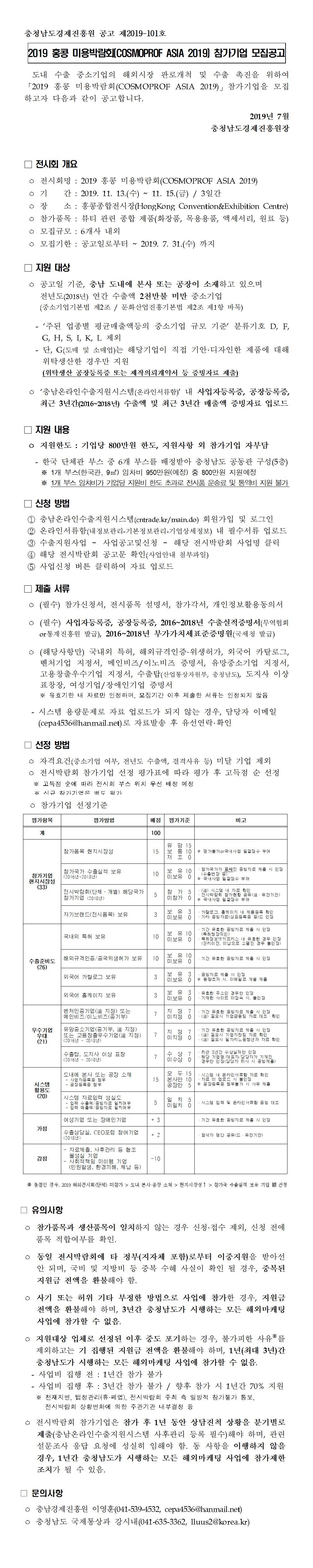 | 모집안내 2019 홍콩미용박람회(COSMOPROF ASIA 2019) 참가기업 모집안내 |