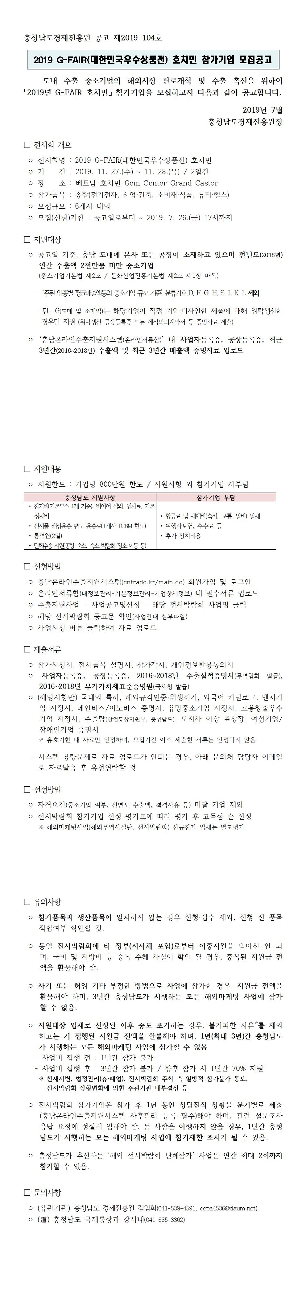 | 2019 G-FAIR 호치민 단체전시회 참가기업 모집 |