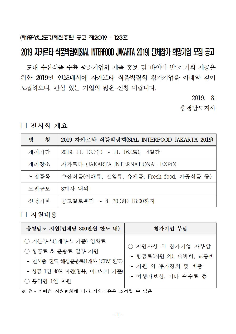 | 2019 수산식품기업 자카르타 식품박람회(SIAL INTERFOOD JAKARTA 2019 |