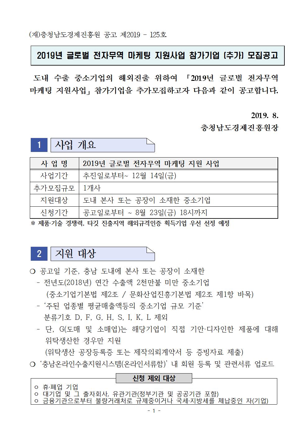 | 2019년 글로벌 전자무역 마케팅 지원사업 참가기업 (추가) 모집공고 |