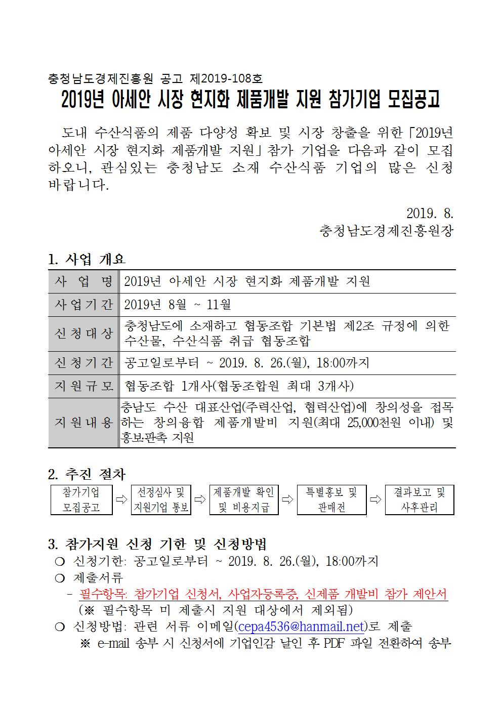 | 2019년 아세안 시장 현지화 제품개발 지원 참가기업 모집공고 |