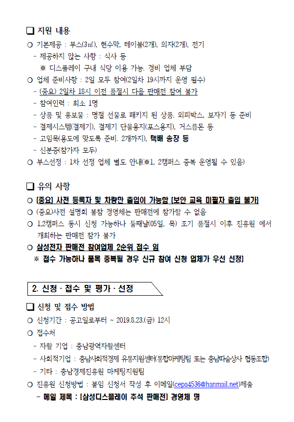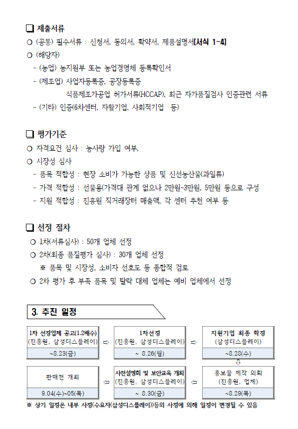 | 삼성디스플레이 농특산물 추석 명절상품 판매전 참여기업 (긴급) 모집공고 |