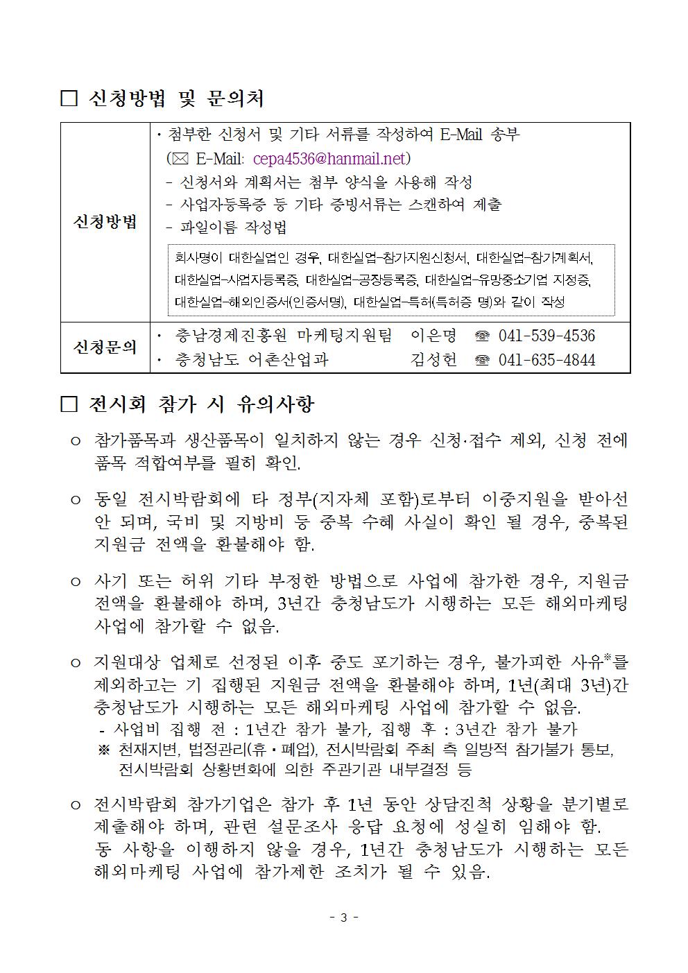중소기업 제품의 국/내외 판로개척을 위해 국내 전시박람회 참가지원,