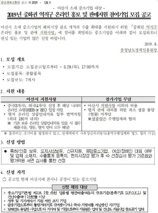 | 2019년 중화권 역직구 온라인 홍보 및 판매지원 참여기업 2차 추가 모집 공고 |