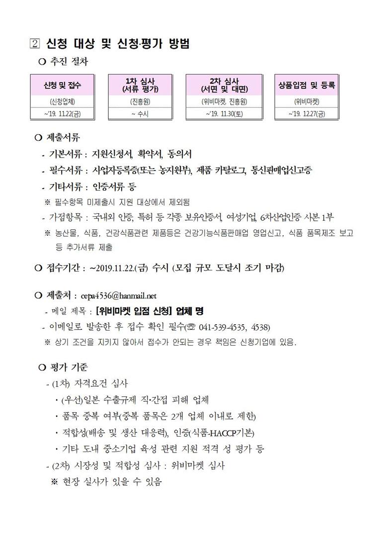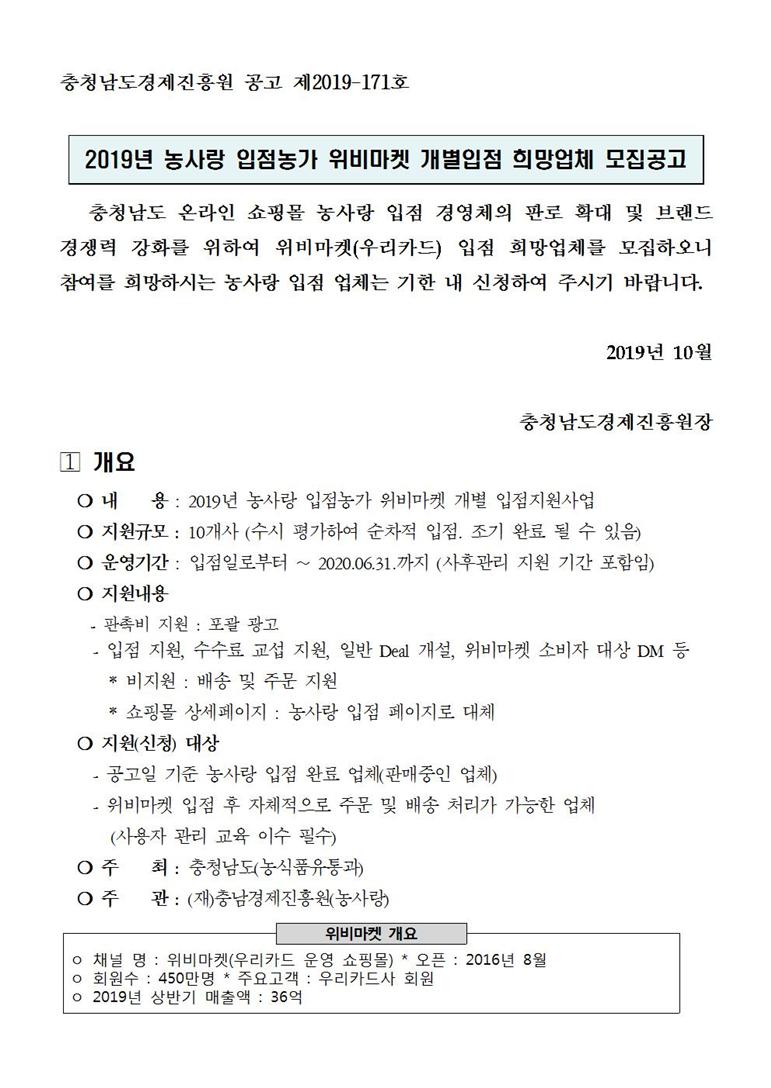| 2019년 농사랑 입점농가 위비마켓 개별입점 희망업체 모집공고 |