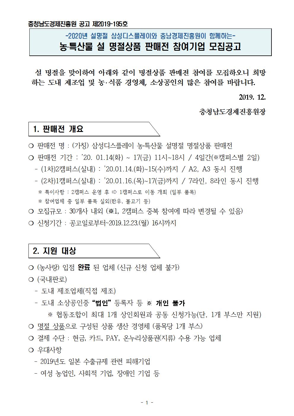 | 삼성디스플레이 농,특산물 설명절 명절상품 판매전 모집공고 |