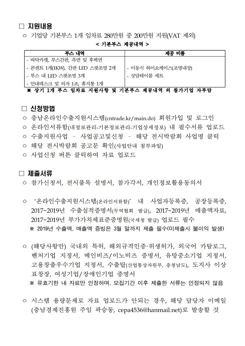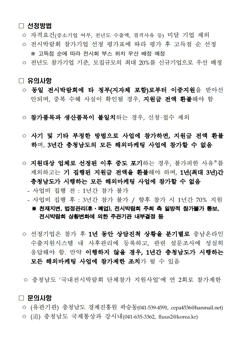 중소기업 제품의 국/내외 판로개척을 위해 국내 전시박람회 참가지원,