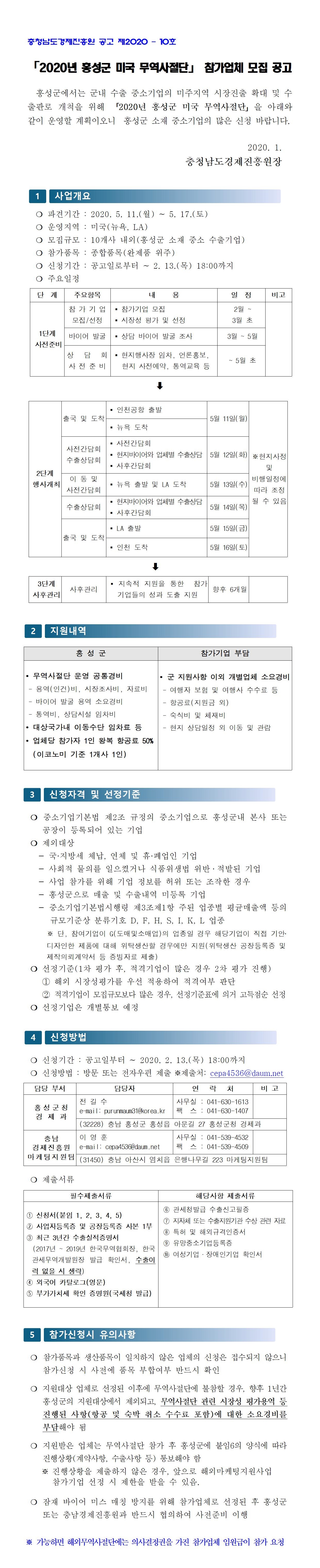 | 2020년 홍성군 미국 무역사절단 참가기업 모집공고 |