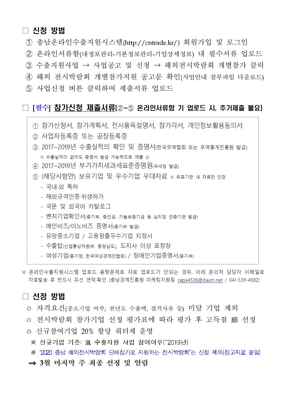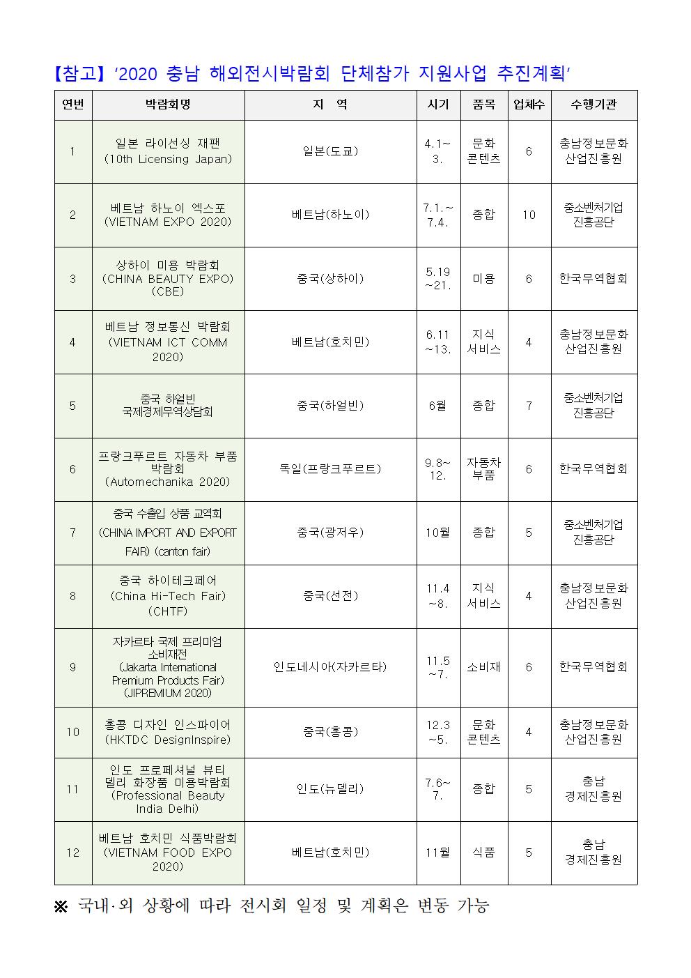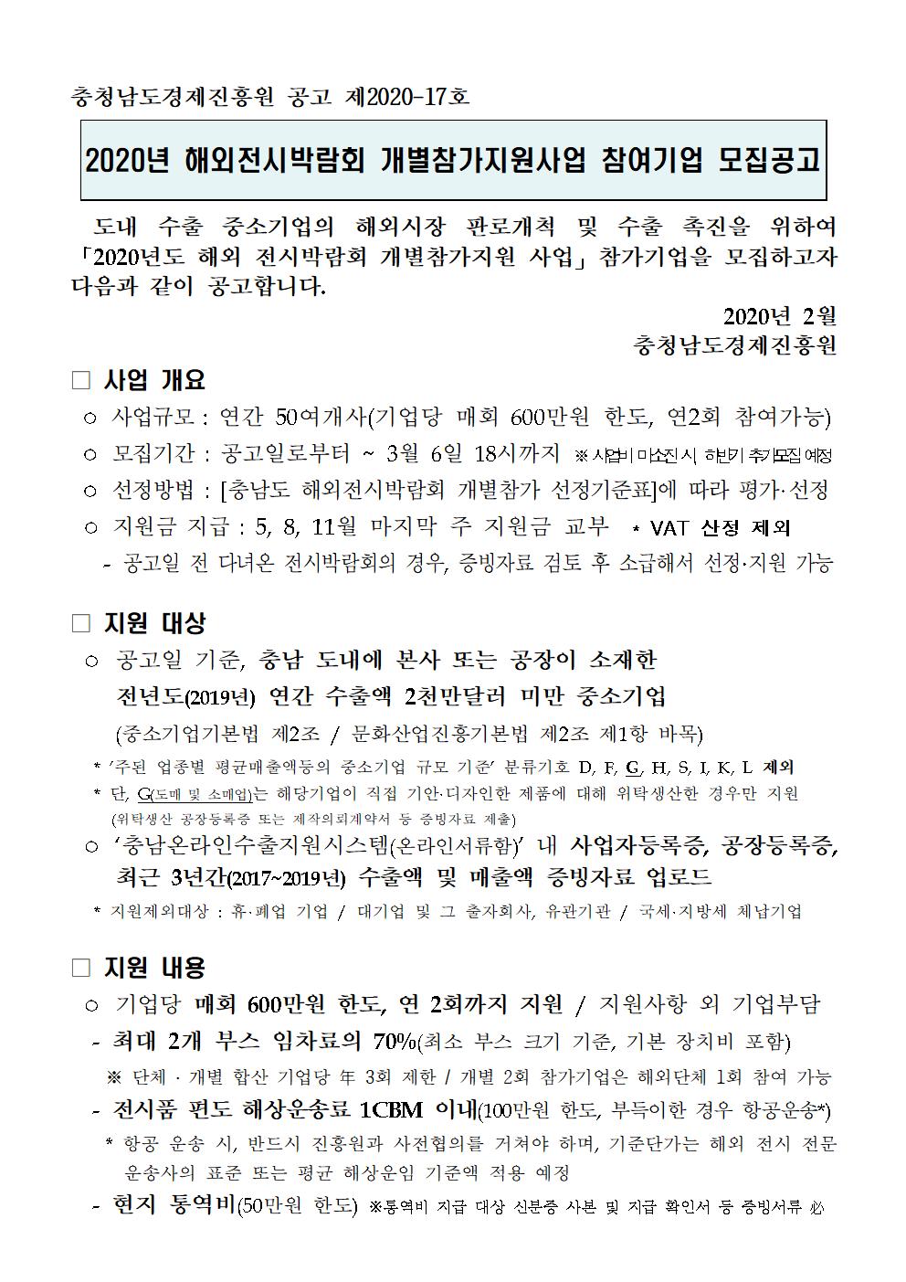 | 2020년도 해외전시박람회 개별참가지원 사업 참여기업 모집공고 |