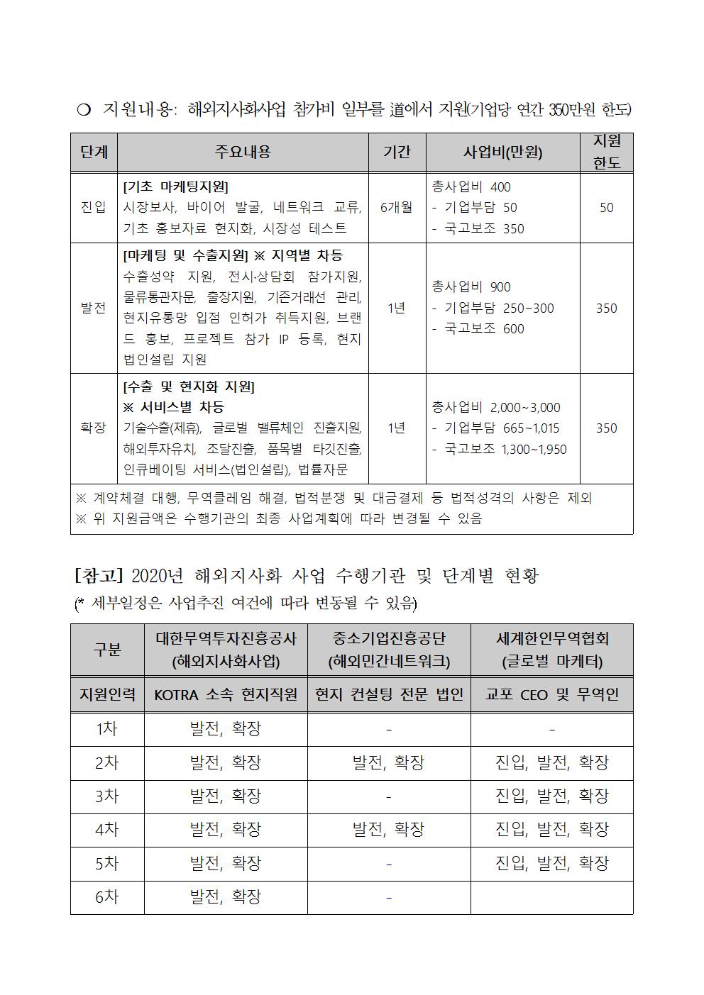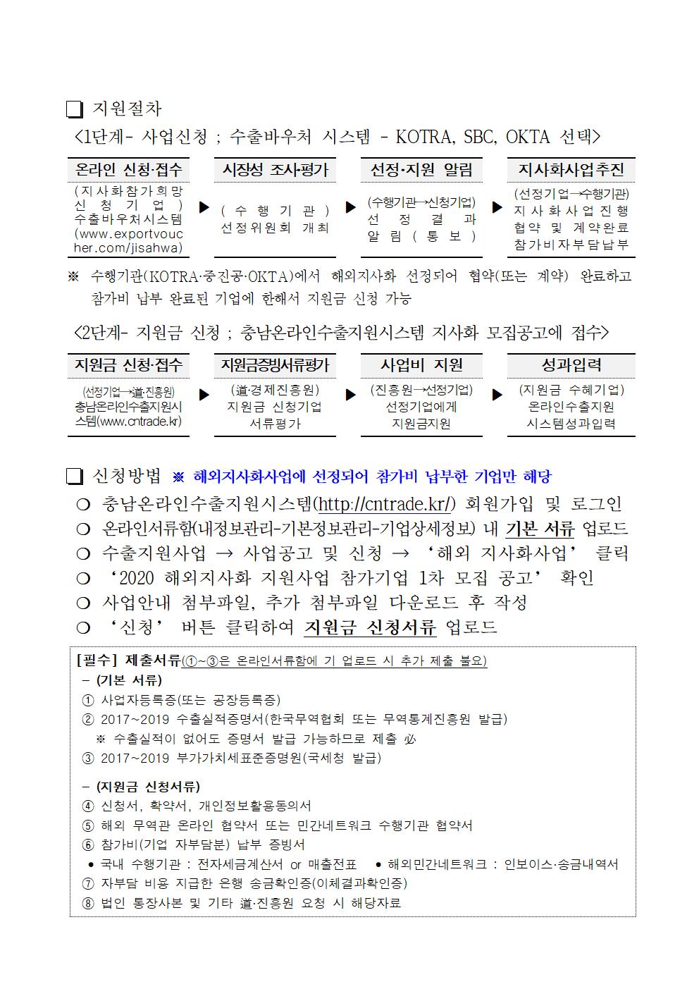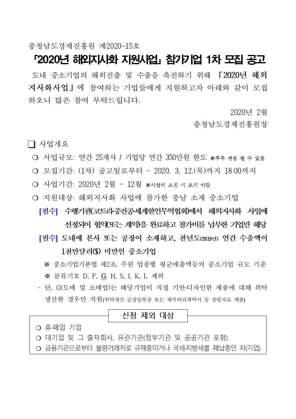 | 2020 해외지사화 지원사업 참가기업 1차 모집 공고 |
