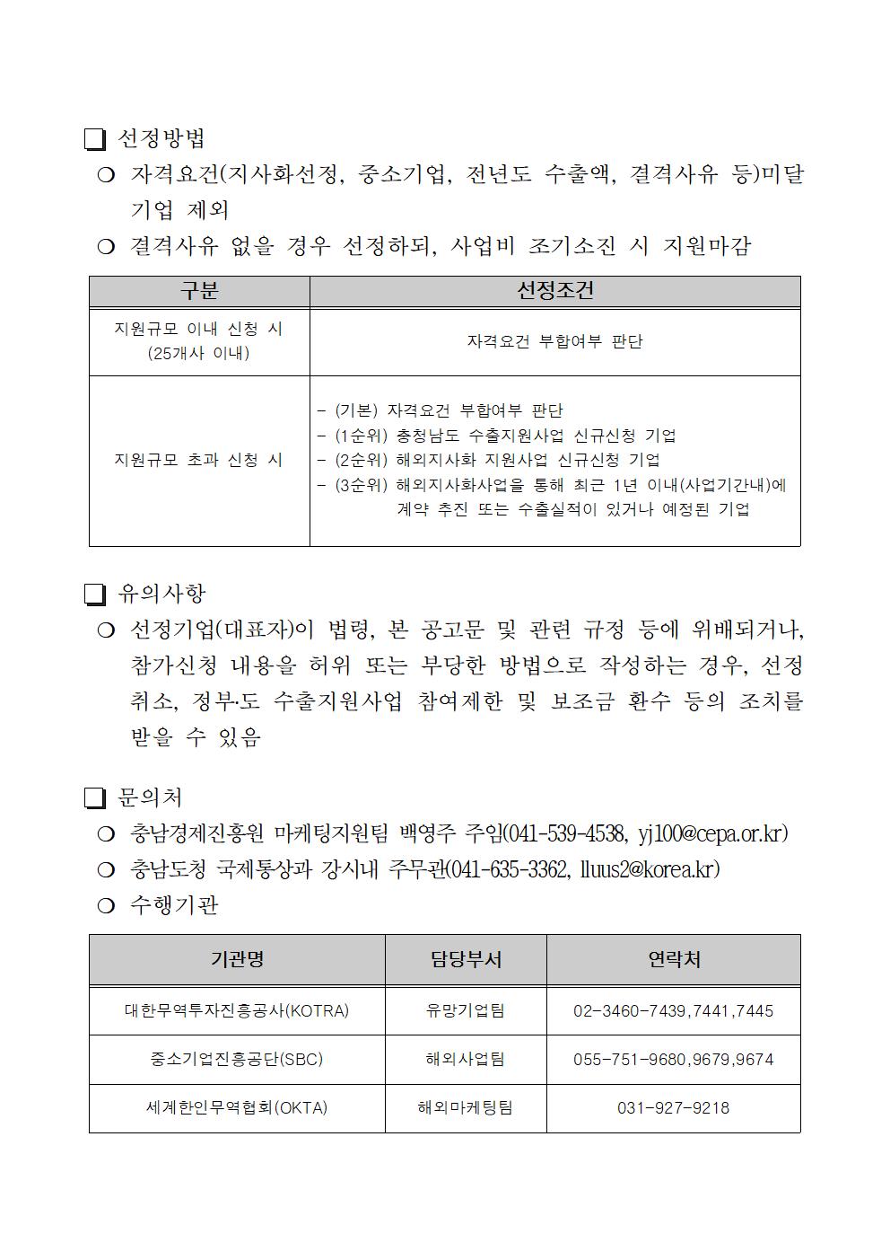 중소기업 제품의 국/내외 판로개척을 위해 국내 전시박람회 참가지원,